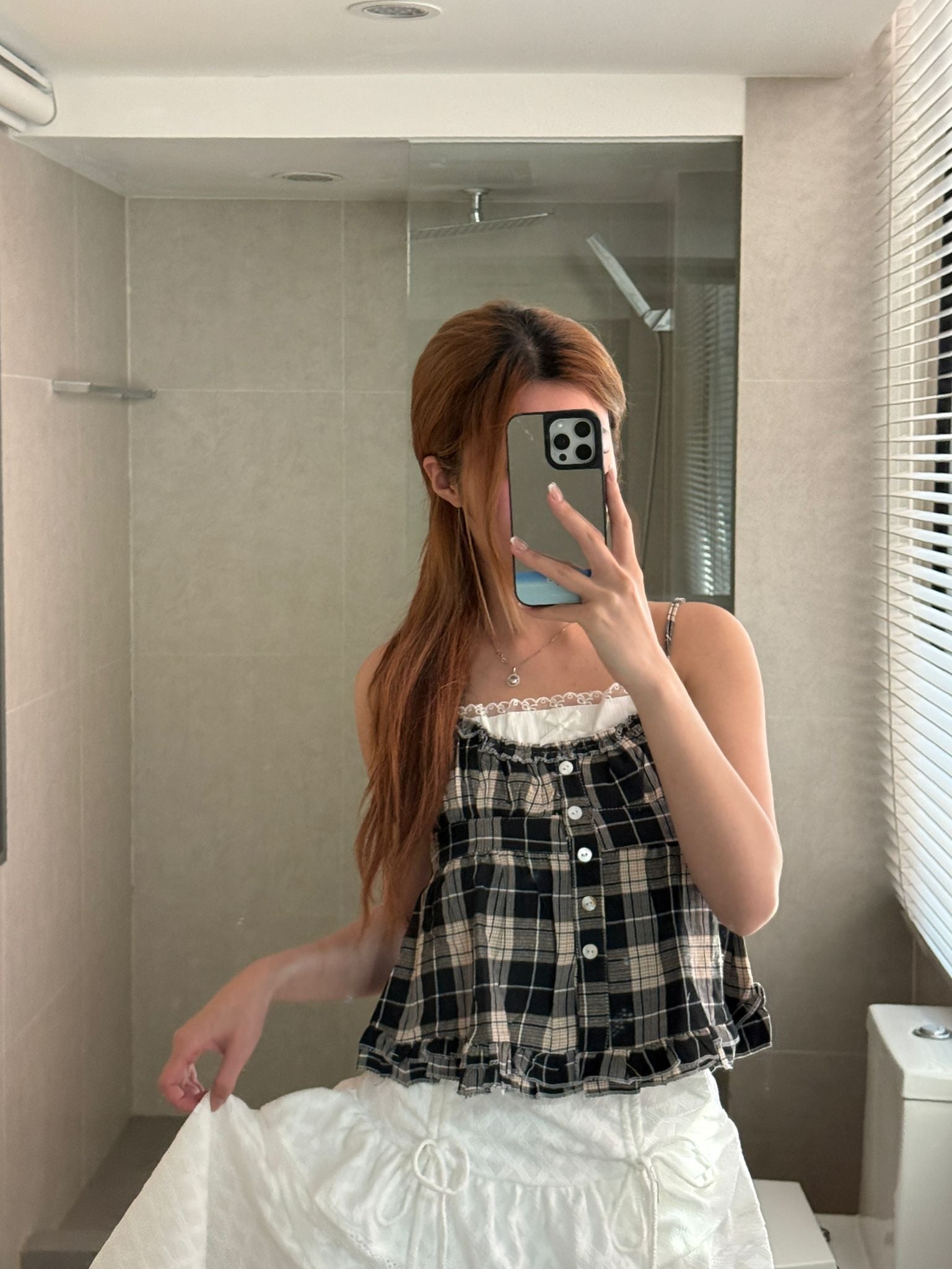 #THYU09 Checked Halter Top