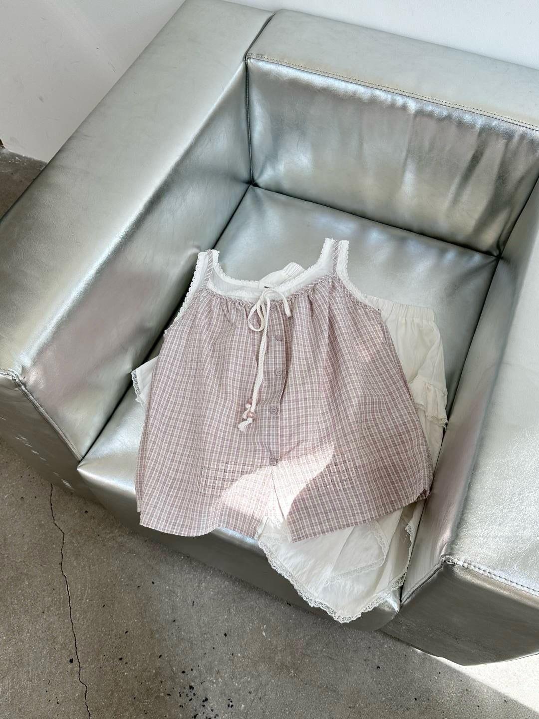 #MD76 Checker Layered Tank Top