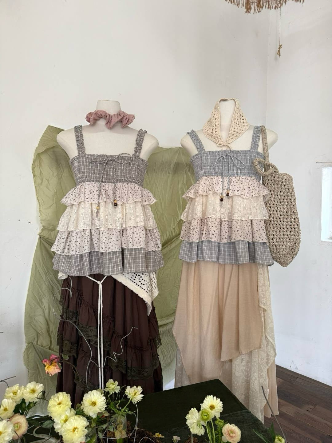#MD72 Ribbon Lace Layered Top