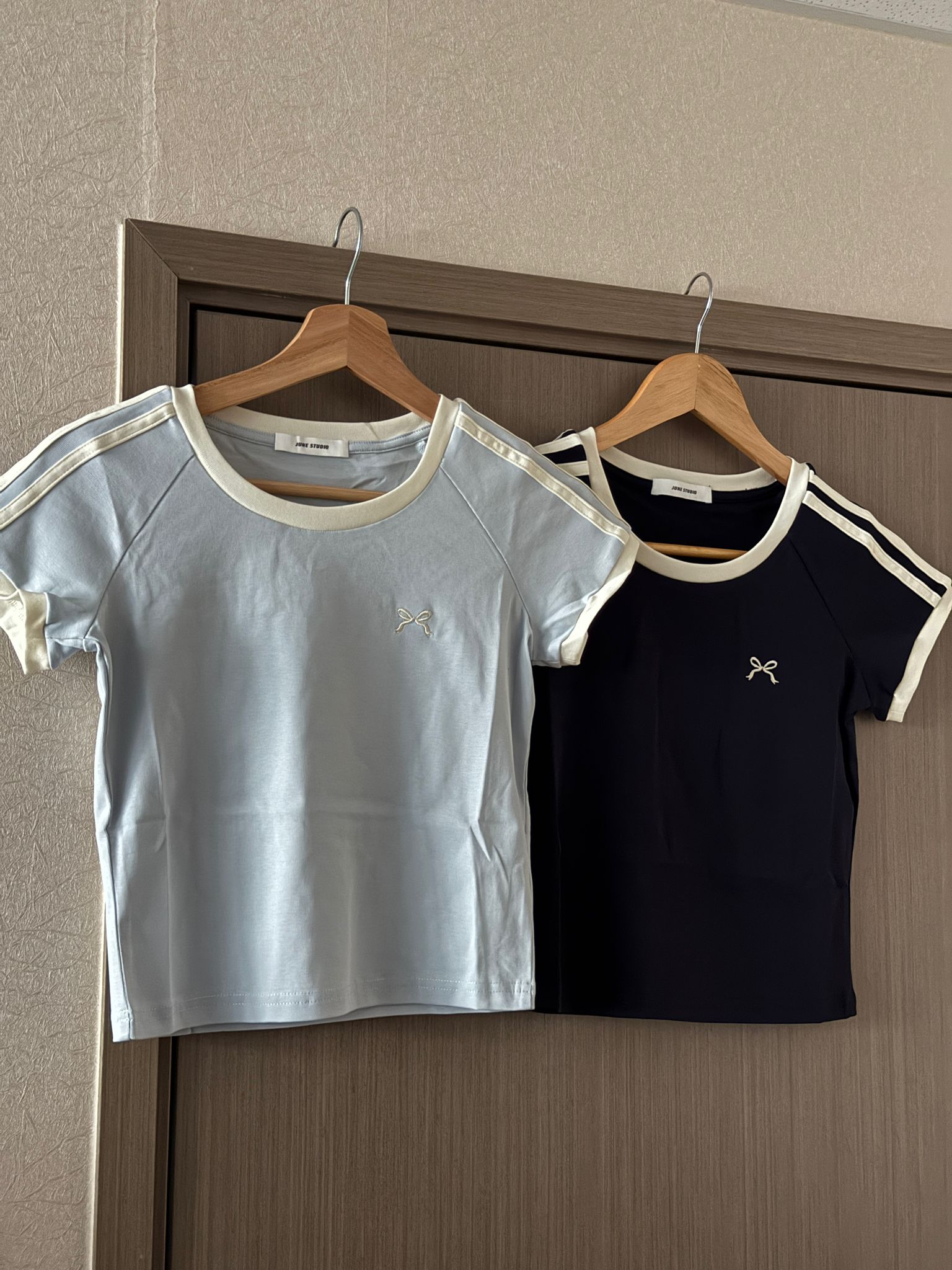 - #MD62 Ribbon Logo Stripes Crop Top